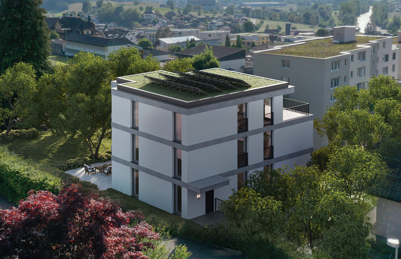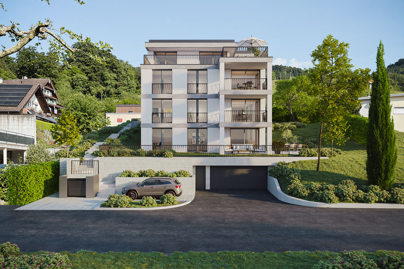 Ein weiteres Projekt wurde für die Schweizer Immobasis AG visualisiert: eine Villa in Root mit Blick auf den Pilatus. Das dreistöckige Gebäude mit Penthouse Wohnung auf dem Top Floor und schöne Dachterrasse wurde neu geplant und visuell umgesetzt. Zumdem wurde die Immobilie dann in eine Drohnenaufnahme der Umgebung eingesetzt.