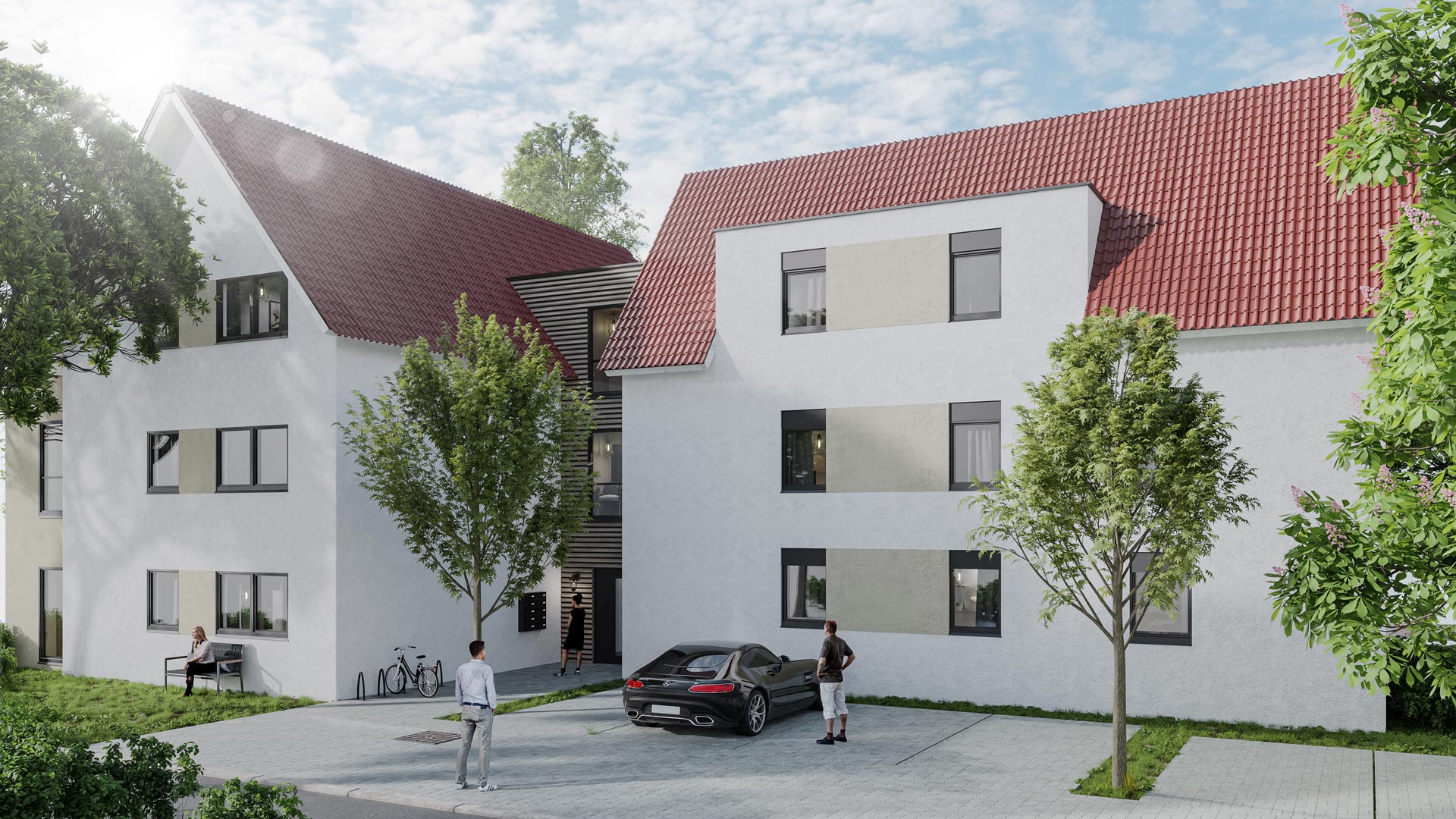 In Schwäbisch Gmünd-Großdeinbach hat PLANWERK3D im Auftrag der Novus Projektbau GmbH die Visualisierung eines Mehrfamilienhauses übernommen. In unserem Real 3D Concept wurde der Scheunenanbau sowie die üppige Begrünung entfernt und der gewonnene Platz durch das neue Mehrfamilienhaus sowie einen angrenzenden Spielplatz virtuell ersetzt. Zudem wurden Detailaufnahmen der neuen Immobilie angefertigt.