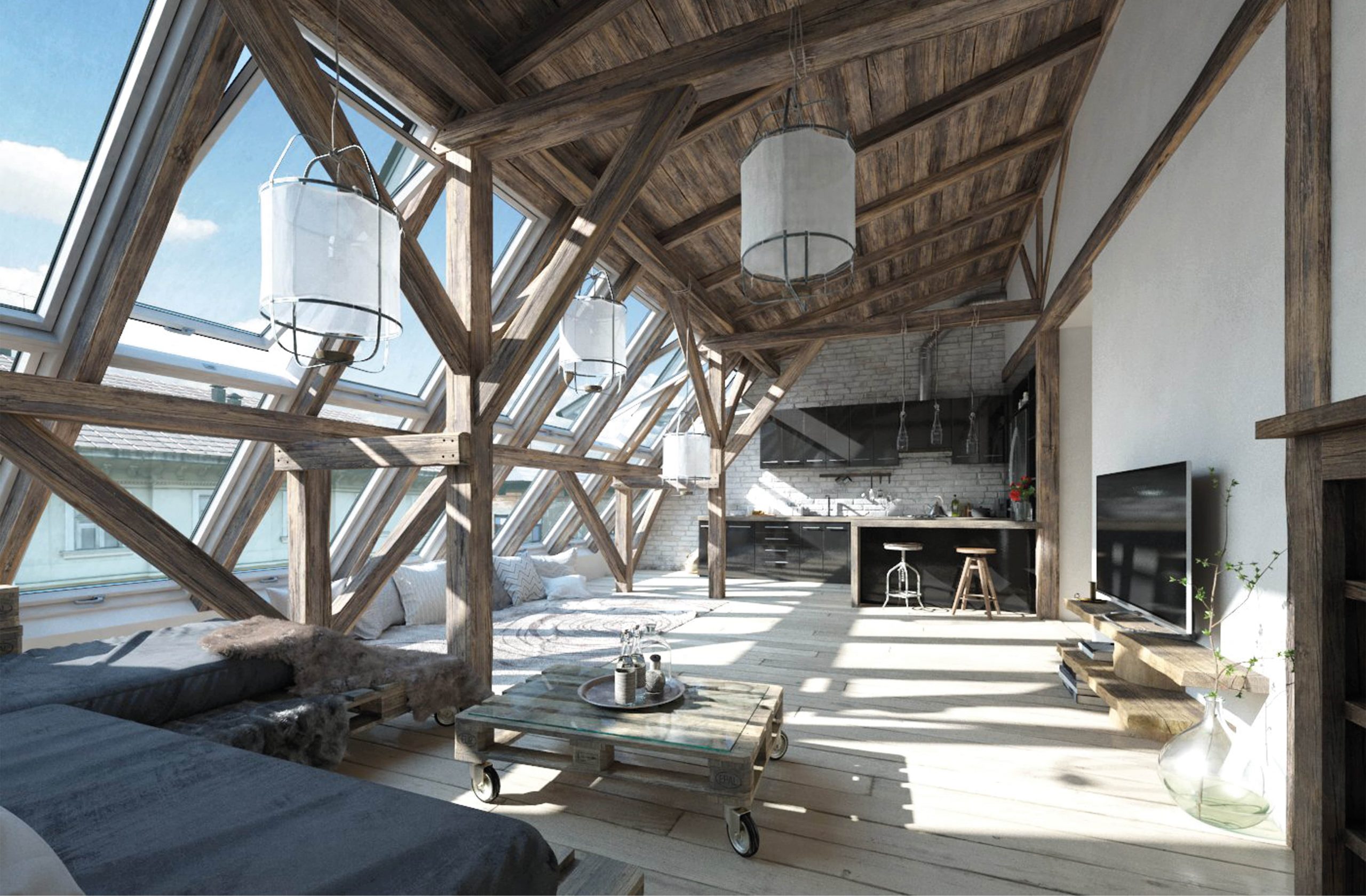 Auf Grundlage der Architektur Pläne wurde das Objekt in 3D modelliert und in Verbindung mit einer großen Fensterfront und einer edlen Holz-Beton-Optik im Industrial Design zu neuem Glanz verholfen.